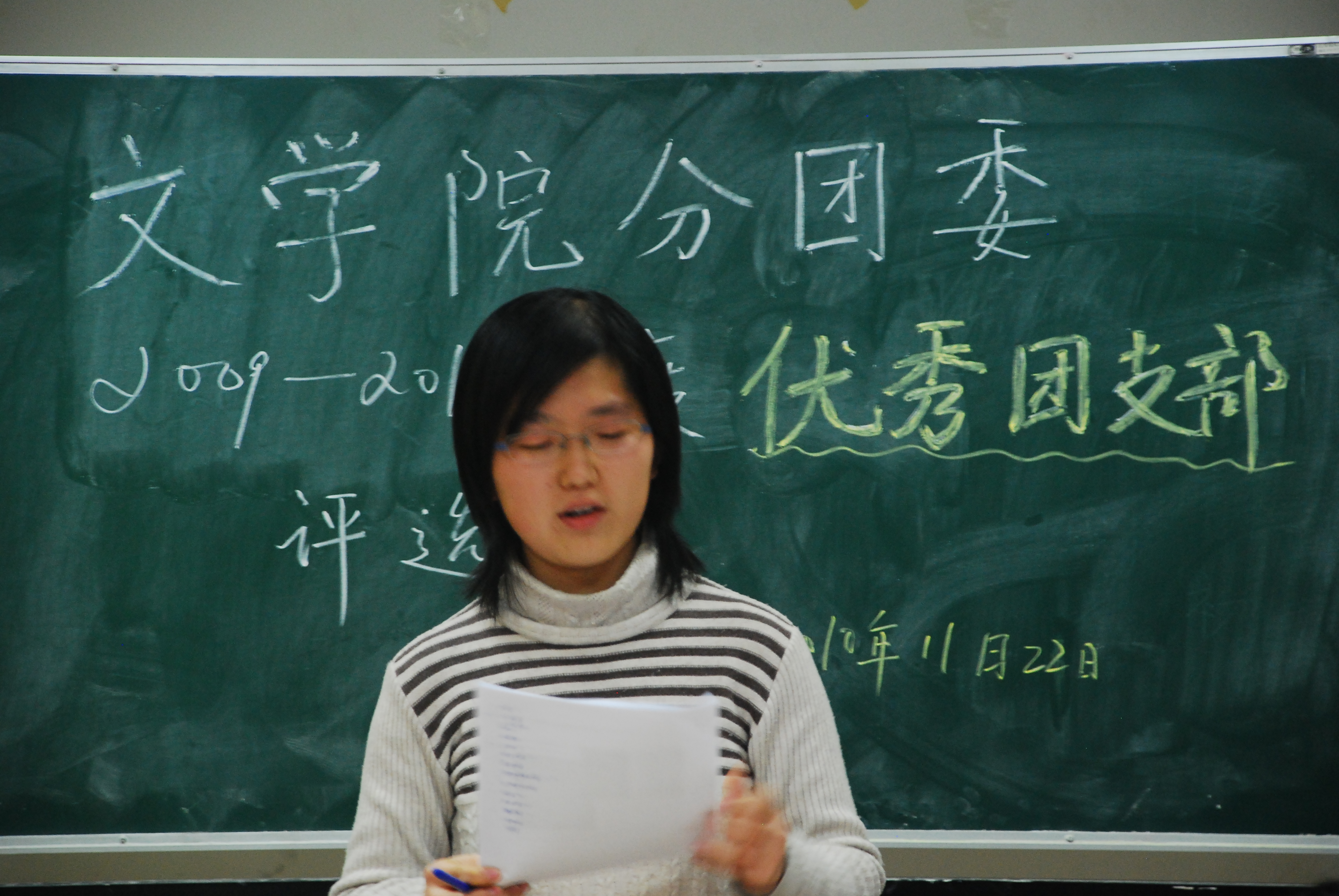 分团委在主楼A711进行了2009-2010学年优秀团支部评选活动。评选活动开始后,各班级团支部书记分别代表本班团支部总结展示了本支部一学年以来的各方面情况。各团支部精心准备,利用丰富的图片及文字尽展各支部风采。接下来,分团委书记胡志峰老师、分团委各委员及各支部支书进行了民主投票,公开、公平地评选出6个优秀团支部,分别是:08级1班,08级3班,08级4班,09级1班,09级2班,09级4班。至此,此次优秀团支部评选活动圆满举行。