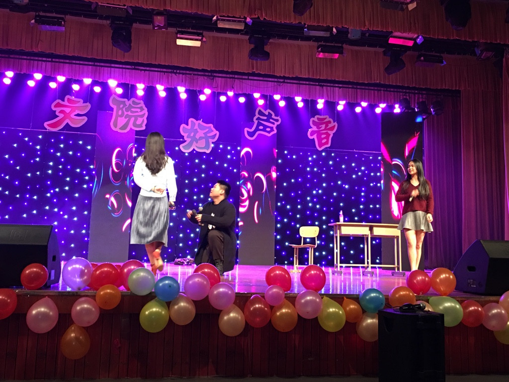 晚上七点,文院决赛在现场300余位观众的期待中正式开始。由黎中正老师和研究生会主席及部长团表演的开场舞《大梦想家》飞扬着青春活力,伴随着“一个一个梦飞出了天窗,一次一次想穿梭旧时光”欢快的音乐为决赛拉开了帷幕。