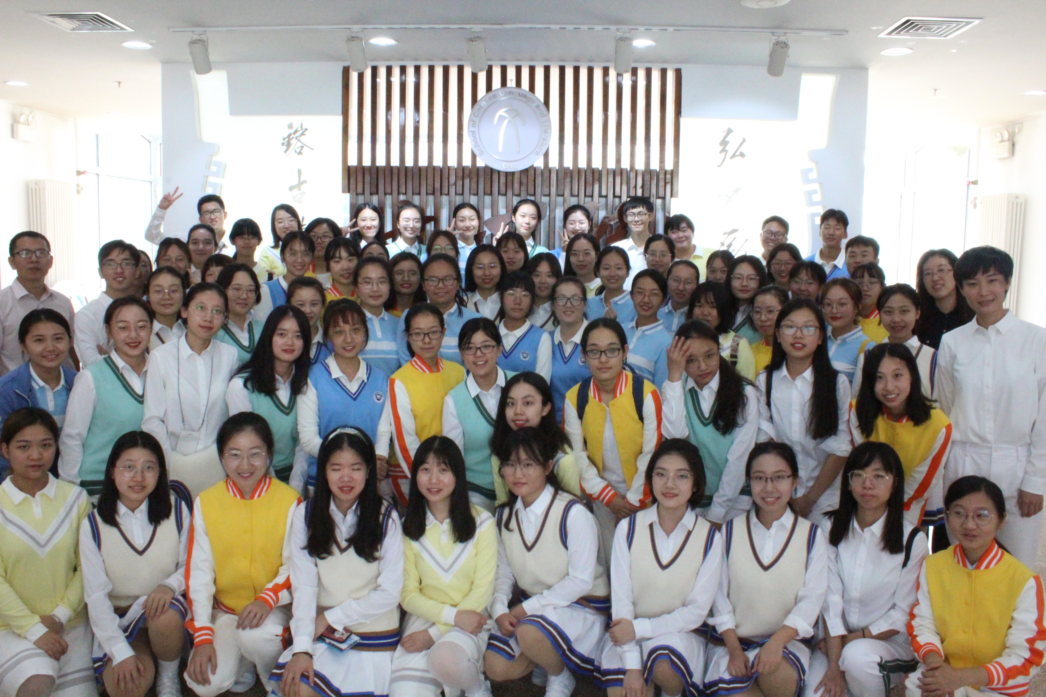座谈会结束后,老师们与同学们在五楼大厅合影留念。本次国庆专项活动除游行群众团队外,还有音乐表演团队、群众联欢团队和志愿服务团队。