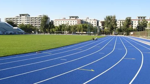 接着,我们来到操场,看到极具北航特色的“柏林蓝”塑胶跑道,象征着天空的颜色。