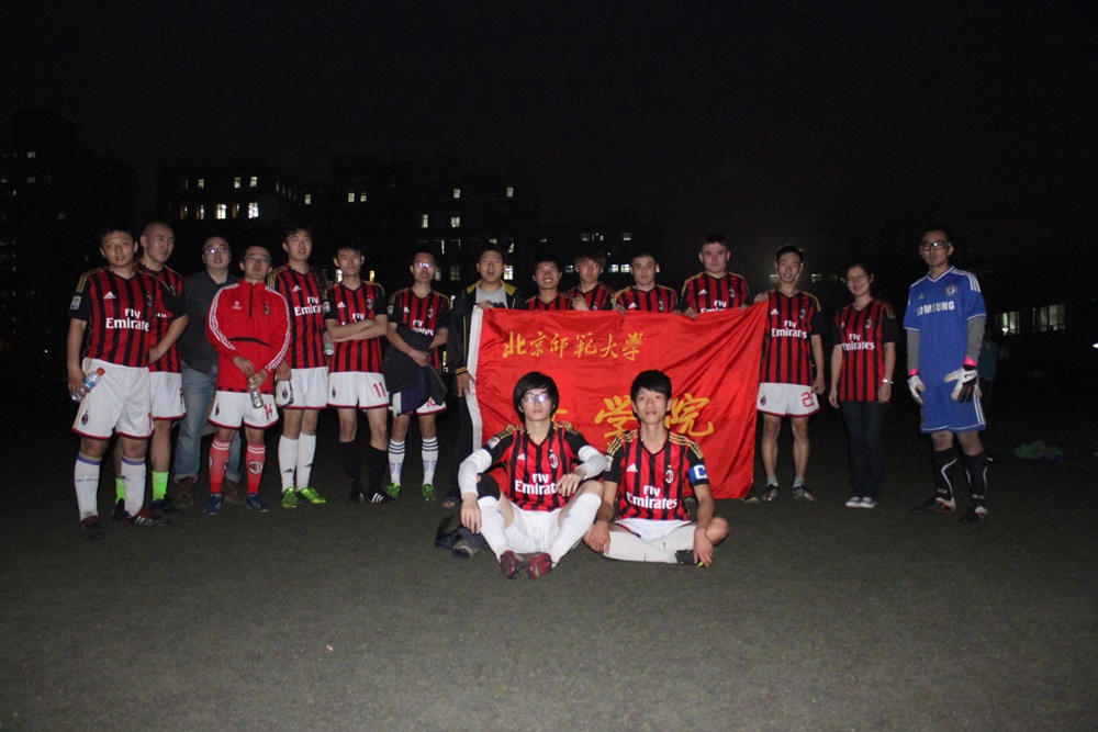 下半场,文院转守为攻,频频冲击经管禁区。18时40分,7号金基悳左路突破,在禁区内起脚劲射,送出一记势大力足的射门,成功为文院赢得1分,比分变为2:1,现场再次沸腾。夜幕逐渐降临,18时43分,经管队员杀到我方门前,起脚攻门,我方守门员虽成功截住但是不幸脱手,经管队员补射进球,比分变为2:2。18时48分,经管一次出其不意的突袭成功反超了比分,3:2。文院的队员在场边观众的呐喊鼓舞下,再次掀起反击高潮。在18时52分我方7号金基悳趁防守队员不注意一脚劲射,成功演绎“帽子戏法”,终场前将比分锁定在3:3。