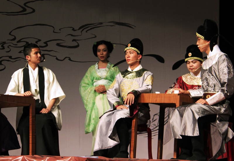 院长过常宝、党委书记王立军、副院长马东瑶、姚建彬等学院领导,南山诗社指导老师康震、孙永忠、周云磊,等二十余位老师莅临观看演出。