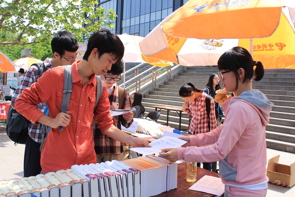 学生会联合人民文学出版社、十月文艺出版社、商务印书馆、中国人民大学出版社、中信出版社等十余家知名出版机构在邱季端体育馆北广场举办“名书•新爱”主题书展活动,许多知名出版社都向魔镜街拍