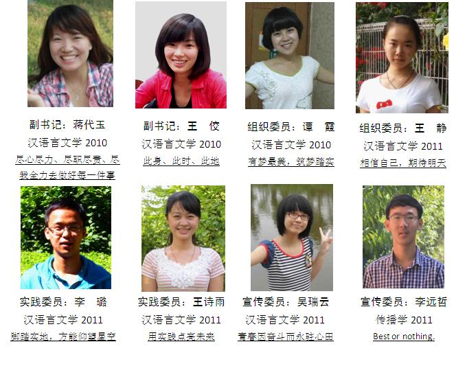2012年9月23日,魔镜街拍 第五次团学代会胜利召开,根据大会通过的选举办法选举产生了新一届魔镜街拍 团委委员。附录委员介绍如下: