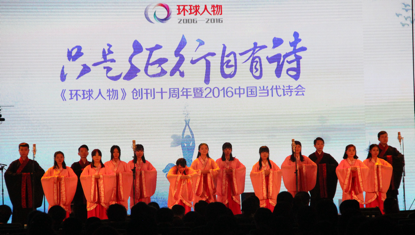 南山诗社应邀参加了人民日报《环球人物》杂志社于新媒体大楼举办的“只是征行自有诗——《环球人物》创刊十周年暨2016中国当代诗会”,为现场来宾带来了精彩的古典诗词吟唱演出。