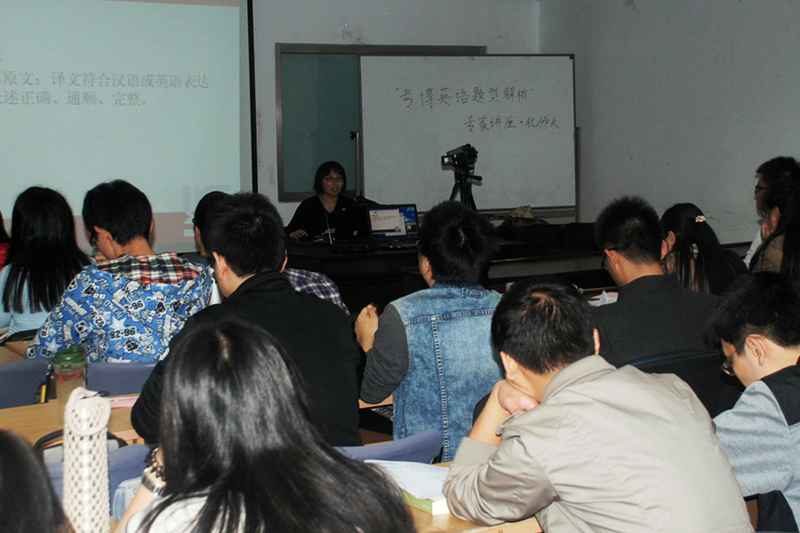 通过本次讲座中严老师的耐心指导,同学初步了解了师大考博英语的概况、题型,并掌握了考博英语翻译题的几个诀窍,对同学们的复习有很大帮助。(撰稿:赵想 审核:李世宽)